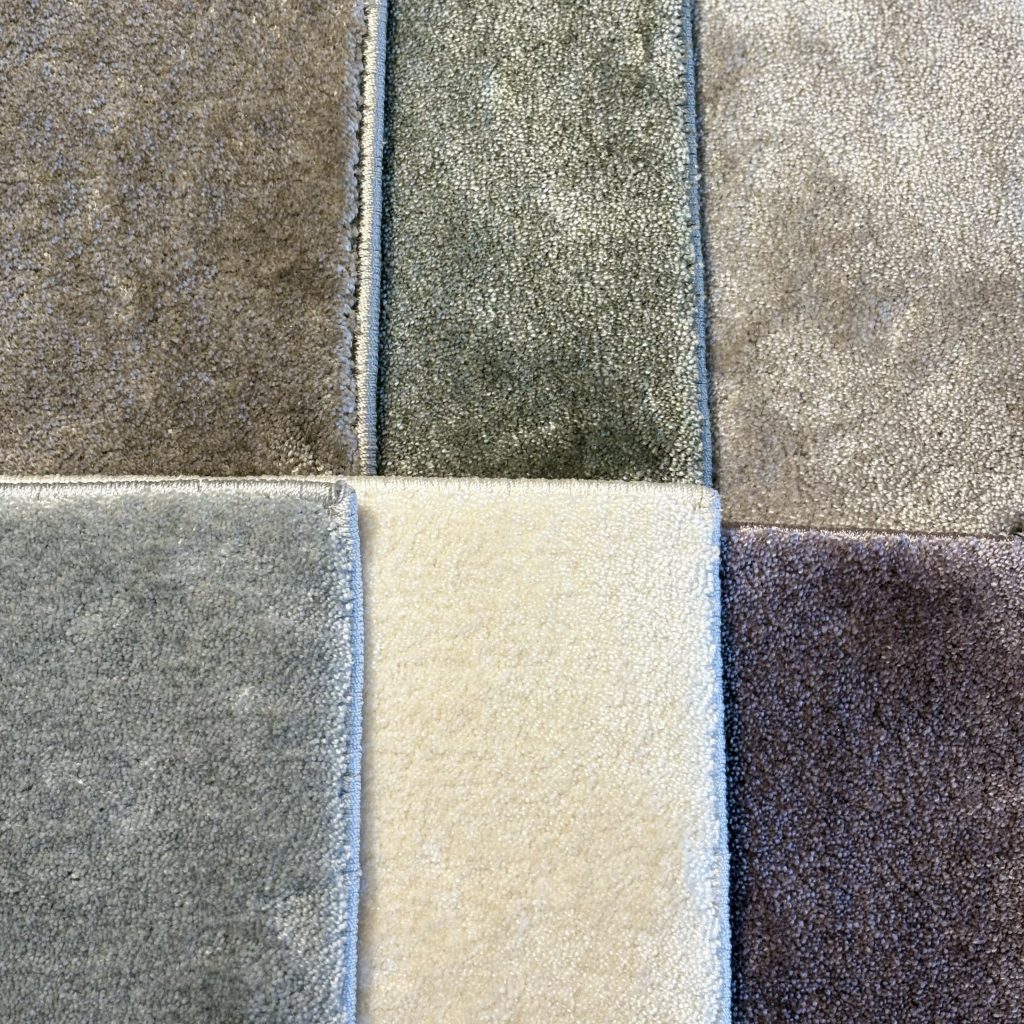 ガラスの重なり水の反射などからインスピレーションを受けたリビングラグです。